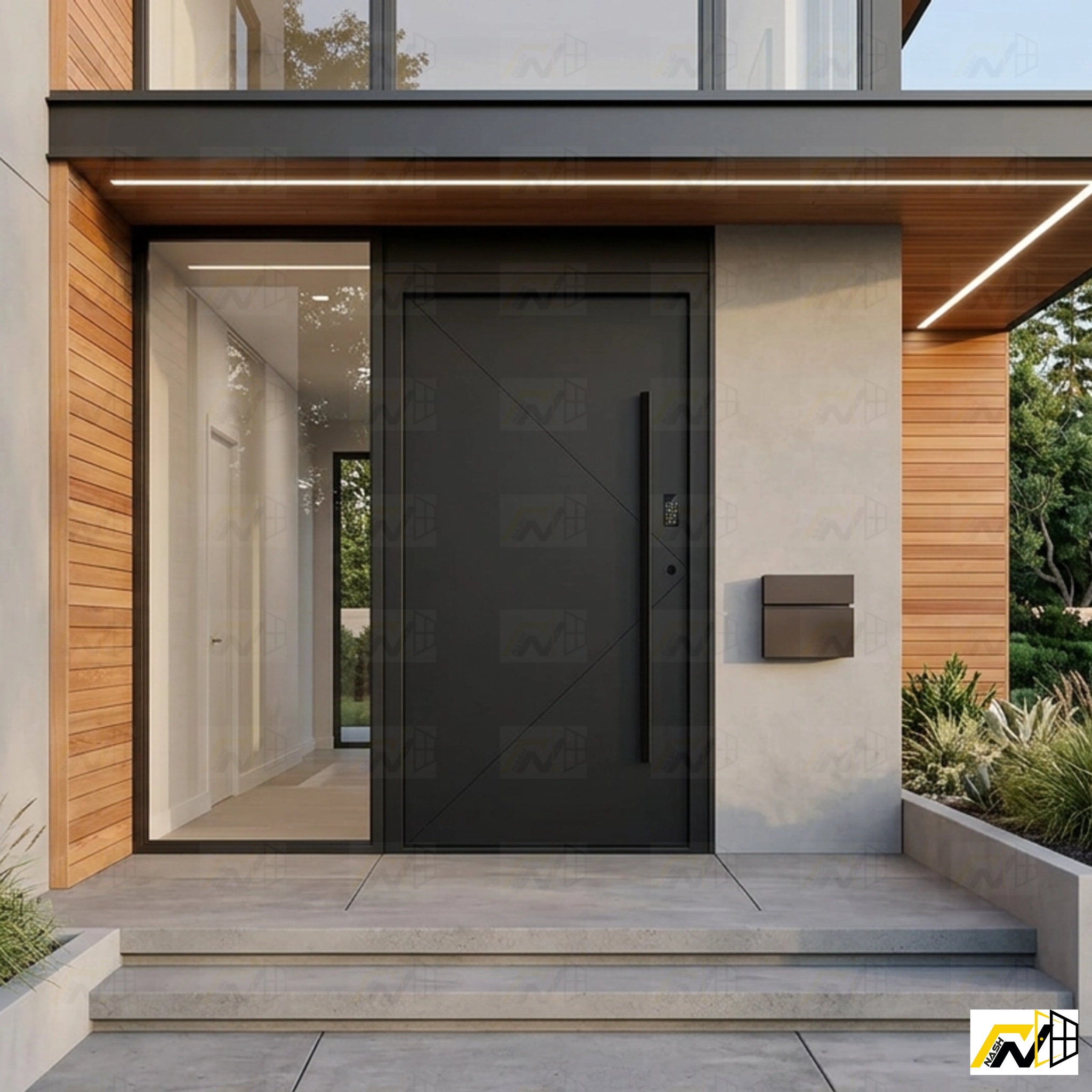 The Nash Hinge Entry Door combines strength, sophistication, and smart technology to deliver unmatched home security and striking visual appeal. Constructed from premium high-grade aluminum, it provides exceptional durability and superior resistance to weather, ensuring long-lasting performance with minimal maintenance. Its advanced multipoint locking system and concealed hinges offer enhanced protection while maintaining a clean, modern look that complements any home exterior. Equipped with an intelligent smart lock, it allows for effortless keyless entry and convenient remote access via smartphone, making everyday use simple and secure. Available in a variety of contemporary designs and finishes, this entrance door not only secures your home but also elevates its aesthetic charm, creating a bold statement of elegance, innovation, and lasting reliability.