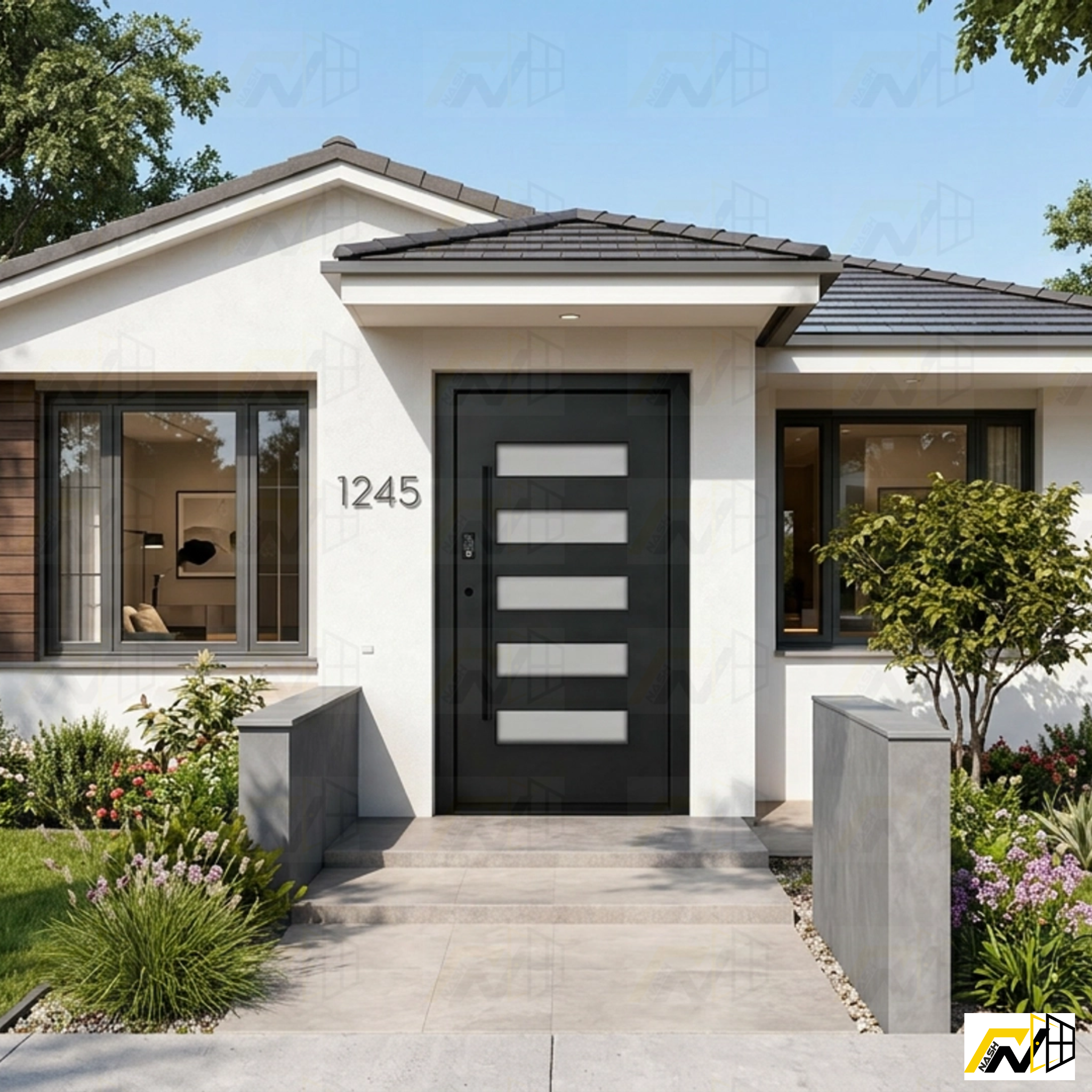 The Nash Hinge Entry Door combines strength, sophistication, and smart technology to deliver unmatched home security and striking visual appeal. Constructed from premium high-grade aluminum, it provides exceptional durability and superior resistance to weather, ensuring long-lasting performance with minimal maintenance. Its advanced multipoint locking system and concealed hinges offer enhanced protection while maintaining a clean, modern look that complements any home exterior. Equipped with an intelligent smart lock, it allows for effortless keyless entry and convenient remote access via smartphone, making everyday use simple and secure. Available in a variety of contemporary designs and finishes, this entrance door not only secures your home but also elevates its aesthetic charm, creating a bold statement of elegance, innovation, and lasting reliability.
