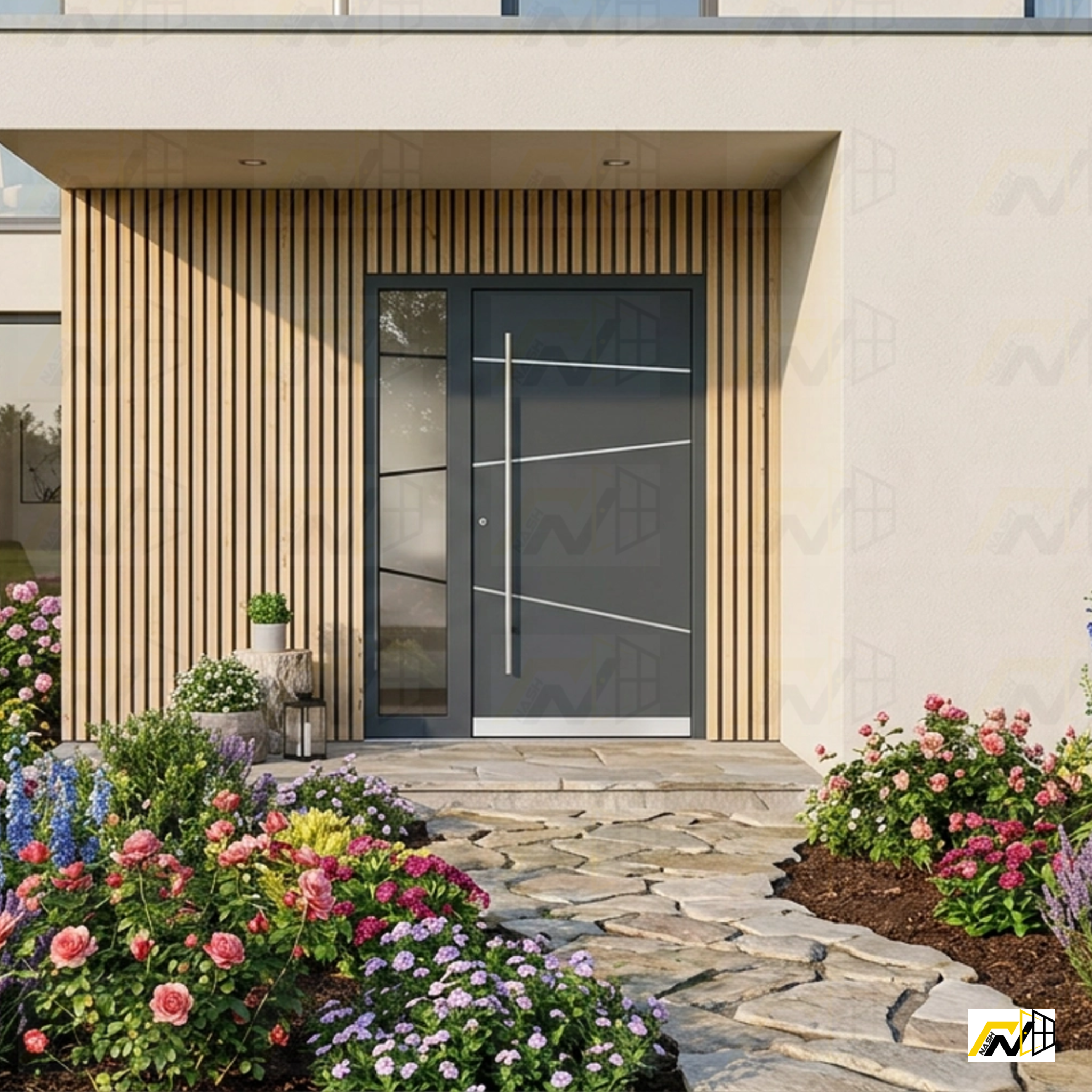 The Nash Hinge Entry Door combines strength, sophistication, and smart technology to deliver unmatched home security and striking visual appeal. Constructed from premium high-grade aluminum, it provides exceptional durability and superior resistance to weather, ensuring long-lasting performance with minimal maintenance. Its advanced multipoint locking system and concealed hinges offer enhanced protection while maintaining a clean, modern look that complements any home exterior. Equipped with an intelligent smart lock, it allows for effortless keyless entry and convenient remote access via smartphone, making everyday use simple and secure. Available in a variety of contemporary designs and finishes, this entrance door not only secures your home but also elevates its aesthetic charm, creating a bold statement of elegance, innovation, and lasting reliability.